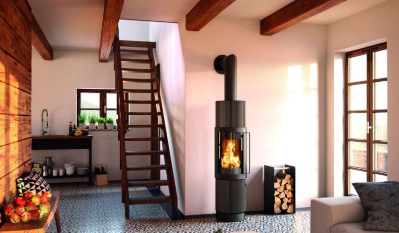 Le poêle à bois Elvas, élancé et tout en finesse est une véritable ode à la gloire du feu. Il diffuse une chaleur douce, à l’image de son habillage délicat en céramique lisse, plissée ou griffée. Personnalisable dans un grand nombre de couleurs, Elvas s’intègre parfaitement dans tous les intérieurs. Ce poêle à bois pivotable s’oriente à votre guise pour que vous profitiez du plaisir de la flamme où que vous soyez. Flamme verte 7* Compatible RT2012