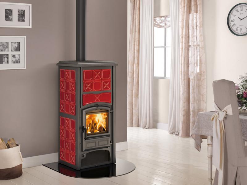 THERMO POELE A BOIS. Tiroir pour cendres extractible • Revêtement intérieur du foyer en fonte et acier • Portes et élément supérieur en fonte émaillé • Air primaire et secondaire réglables • Système de postcombustion (basses émissions) • Possibilité de prélever l’air comburant de l’extérieur • Dispositif de sécurité DSA (soupape DSA optionnelle) • Vitre céramique