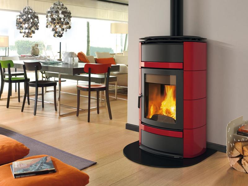 Revêtement extérieur en faïence • Base, top et porte en fonte • Revêtement interne du foyer en acier • Foyer à flamme verticale • Air primaire réglable, air secondaire et tertiaire précalibrées avec système post-combustion • Dispositif de sécurité DSA (soupape DSA optionnelle) • Vitre céramique résistante à 750° C en une seule pièce