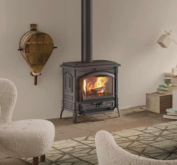 Tiroir pour cendres extractible • Revêtement intérieur du foyer en acier, fonte et Nordiker • Structure entièrement en fonte émaillée • Air primaire et secondaire réglables • Système de postcombustion (basses émissions) • Dispositif de sécurité DSA (soupape DSA optionnelle) • Vitre céramique