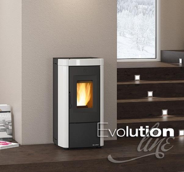 Échangeur de chaleur à surface rayonnante • Compartiment des cendres amovible • Ventilation ambiante avec évacuation par le haut avec ventilateur dédié, désactivable • Foyer, porte du foyer et brasier en fonte • Évacuations de la fumée disponibles: postérieure • Module d’urgence • Brasier amovible pour un nettoyage facile • Contrôle avec télécommande « tactile », avec fonction thermostat . Disponible en blanc, noir et bordeaux